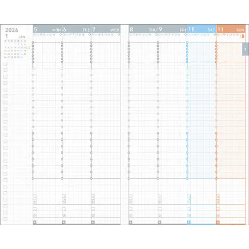 Layout Giapponese ad Alta Efficienza: Progettato per una pianificazione visiva e immediata, con una timeline oraria integrata che rivoluziona la gestione del tempo.