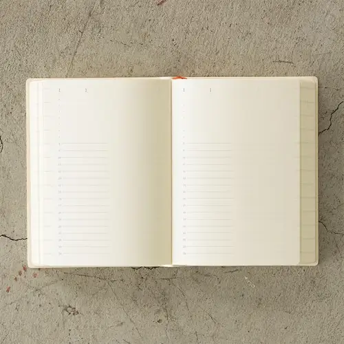 La struttura giornaliera è pensata per chi cerca ordine senza rinunciare alla creatività: la griglia oraria dalle 8:00 alle 24:00 organizza gli impegni, mentre l'ampia sezione libera inferiore invita ad annotare pensieri, progetti e a personalizzare con la propria fantasia. La rilegatura giapponese permette all'agenda di aprirsi completamente restando piatta, rendendo ogni pagina facilmente decorabile.