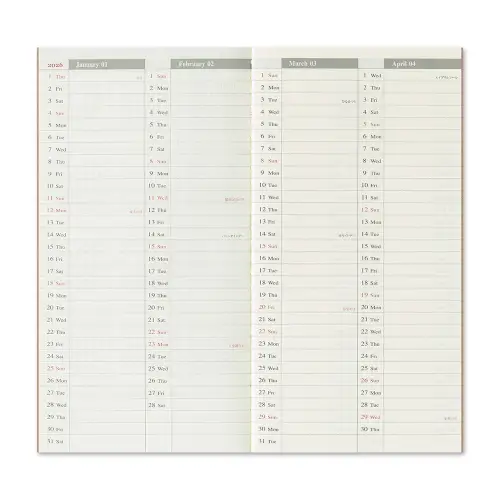 La TRAVELER’S COMPANY – TN Regular Refill 2026 Weekly Vertical è una ricarica settimanale datata per il TRAVELER’S notebook formato Regular.