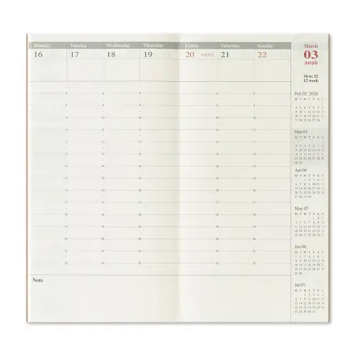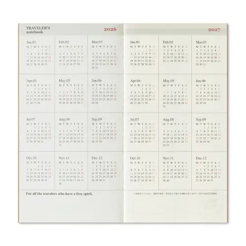 Ideale per: chi desidera pianificare le settimane del 2026 con chiarezza e precisione, mantenendo il design elegante e funzionale del TRAVELER’S notebook.