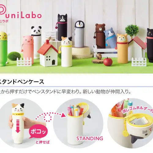 Lihit Lab - Astuccio giapponese portapenne verticale PuniLabo [Big Size] Hachihaware cat