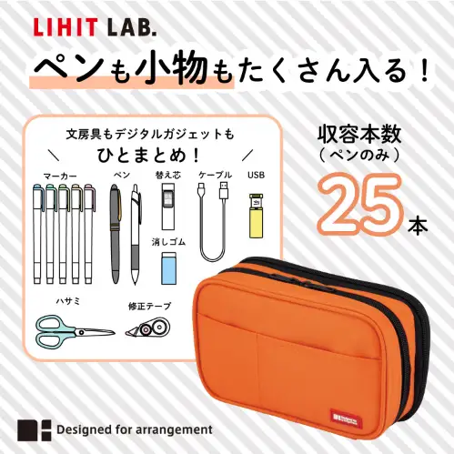 Lihit Lab - Book Style Pen Case – Double – 2 Zip – Arancione