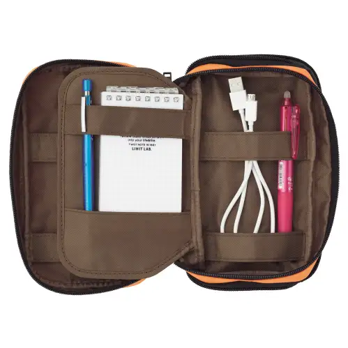 La struttura interna è progettata per contenere penne, matite, evidenziatori e piccoli accessori, mantenendoli ordinati e facilmente accessibili. Il materiale esterno in tessuto tecnico assicura lunga durata e protezione del contenuto, mentre la chiusura a doppia zip garantisce sicurezza e praticità durante il trasporto. Il colore Indigo conferisce un aspetto moderno e raffinato.