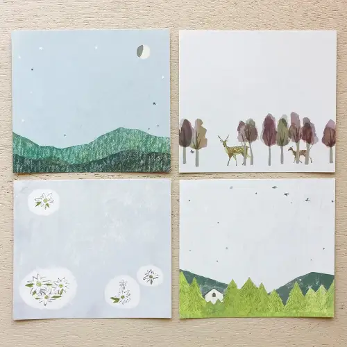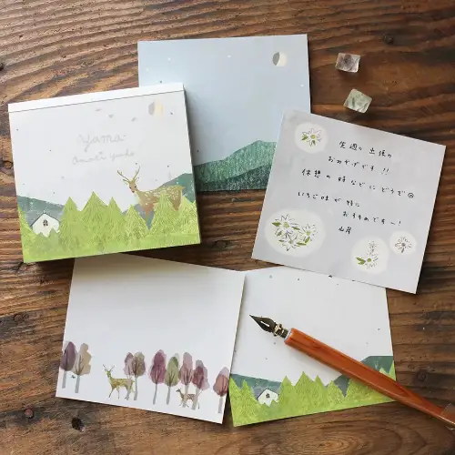 Blocco note a tema montagna (Yama), con illustrazioni delicate che raccontano il fascino delle vette, dei boschi e dei paesaggi naturali. Ogni foglio riporta scene evocative di alberi, sentieri, nuvole e piccoli dettagli che richiamano la quiete e la bellezza della natura, perfette per appunti, messaggi e decorazioni creative. La carta di alta qualità è microforata per una rimozione netta e la base rigida garantisce stabilità durante la scrittura.