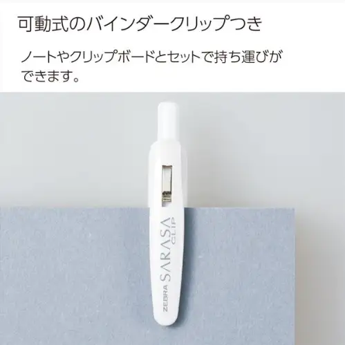 Il corpo bianco opaco è leggero e ergonomico, studiato per garantire il massimo comfort anche durante lunghe sessioni di scrittura. La clip a molla tipica della serie Sarasa Clip permette di fissare la penna facilmente su quaderni, agende o tasche, rendendola pratica da trasportare in ogni situazione.