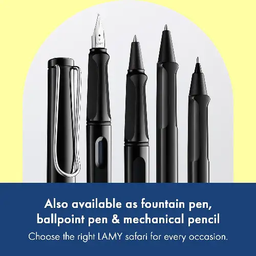 La Lamy Safari Black fa parte della celebre linea Safari, conosciuta per il suo design iconico, robusto e leggero. Il corpo in resina ABS resistente garantisce durata, leggerezza e comfort di scrittura, mentre la finitura Black conferisce uno stile elegante e professionale.
