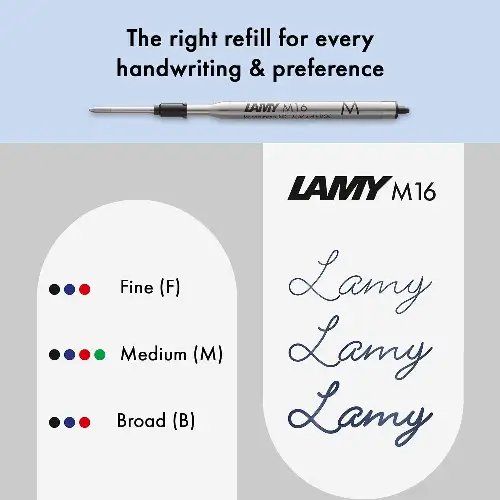 La penna utilizza il refill Lamy M16 nero, assicurando uno scorrimento fluido e uniforme, ideale per una scrittura nitida e confortevole. L’impugnatura ergonomica offre una presa stabile, riducendo l’affaticamento della mano anche durante sessioni di scrittura prolungate.