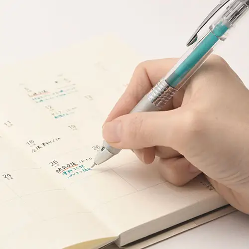 Il corpo della penna è leggero e ben bilanciato, rendendo la scrittura naturale e confortevole. La punta da 0,7 mm è ideale per note dettagliate, appunti e testi di uso quotidiano. Inoltre, il meccanismo scorrevole a scatto protegge la punta e mantiene pulito il notebook o il portapenne.