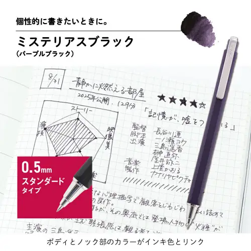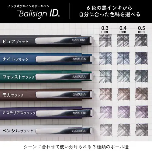 La Sakura Ball Signature iD 0.5 mm, Mysterious Black è una penna a sfera dal carattere profondo e sofisticato, con inchiostro nero intenso dalle sfumature fredde. Perfetta per scrittura quotidiana, lavoro d’ufficio e firme, unisce eleganza minimale e scrittura fluida.