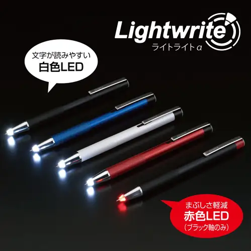 - Zebra - Lightwrite, Penna a sfera a base d'olio, Con luce LED rossa, Inchiostro nero, 0.7mm [P-BA96-RL-BK]