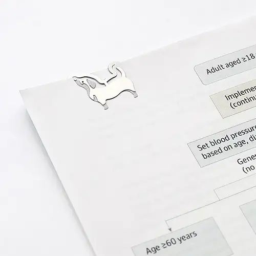 Gli Etching Clips Dog di Midori sono clip in metallo decorative che aggiungono un tocco divertente ed elegante a documenti, notebook e biglietti, ideali per uso quotidiano in ufficio, a scuola o a casa.
