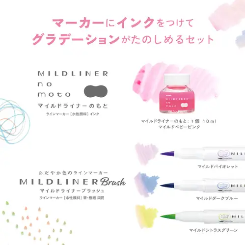 - Zebra - Mildliner No Moto Pink set, 3 evidenziatori punta a pennello e boccetta d'inchiostro [SE-WI1-MBP]