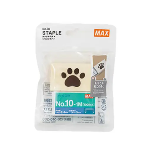 Confezione di ricambio dei punti metallici per la cucitrice della serie Shiri Shirikon Neko di MAX. I punti sono compatibili con il modello HD-10NX e altre cucitrici standard. La confezione marrone si abbina perfettamente all’estetica dei prodotti Shiri Shirikon, rendendo il ricambio un accessorio coordinato e originale.