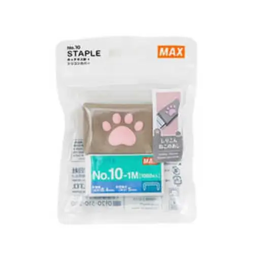 Confezione di ricambio dei punti metallici per la cucitrice della serie Shiri Shirikon Neko di MAX. I punti sono compatibili con il modello HD-10NX e altre cucitrici standard. La confezione rosa si abbina perfettamente all’estetica dei prodotti Shiri Shirikon, rendendo il ricambio un accessorio coordinato e originale.