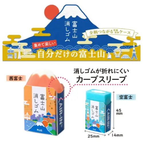 Plus - Gomma Monte Fuji, Limited Edition, Scatoletta Rosa Salmone con due gomme, Due monumenti di Tokyo [ER-100AIF-2P]