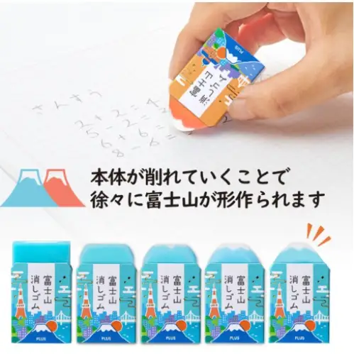 - Plus - Gomma Monte Fuji, Limited Edition, Scatoletta Rosa Salmone con due gomme, Due monumenti di Tokyo [ER-100AIF-2P]