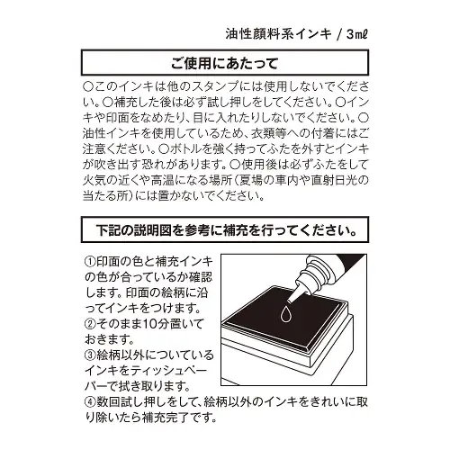 Contenuto: 3 ml — sufficiente per ricaricare il tampone del timbro quando l’inchiostro si affievolisce
