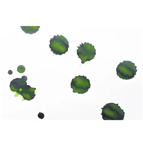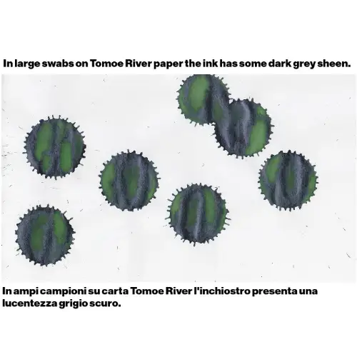 • Sheen: in tratti più spessi su carta come Tomoe River, appare una leggera lucentezza grigio scuro.
