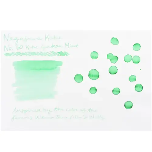 La freschezza rinfrescante di un verde menta, ispirata alle storiche residenze straniere di Kobe. Questo inchiostro fa parte della celebre serie Kobe INK Monogatari, nata dalla collaborazione tra Nagasawa Bungu Center e Sailor. Il colore #60 è un omaggio alle Ijinkan, le affascinanti case in stile occidentale dove vivevano i foreign trader, che punteggiano non solo il celebre quartiere di Kitano-cho ma tutta la città di Kobe, testimoni silenziosi della sua lunga storia di porto internazionale. Questo verde menta vivido e rinfrescante cattura l'atmosfera elegante e cosmopolita di quelle dimore, regalando alla scrittura un tocco di luminosità e charme storico.