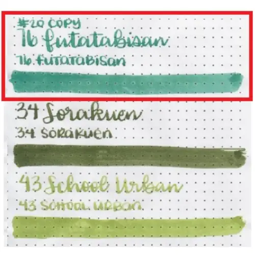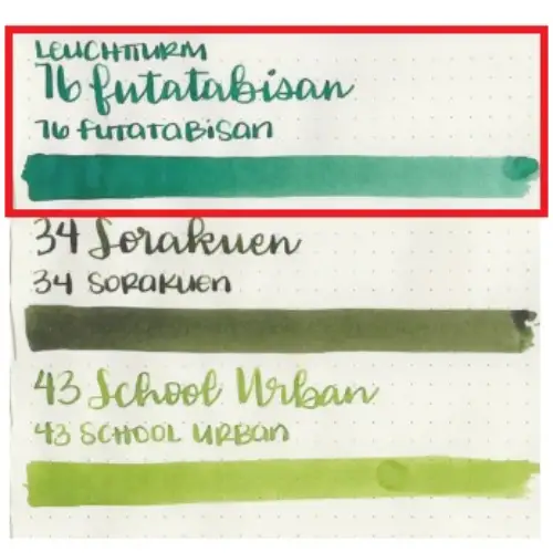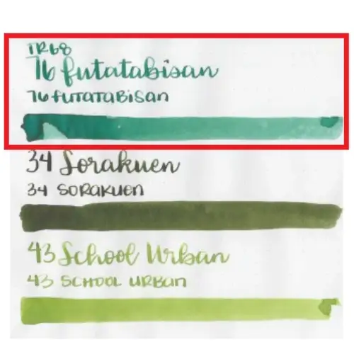 Il verde profondo e silenzioso di un parco storico nel cuore di Kobe. Questo inchiostro fa parte della celebre serie Kobe INK Monogatari, nata dalla collaborazione tra Nagasawa Bungu Center e Sailor. Il colore #76 è ispirato al Futatabi Park, un parco che custodisce il Cimitero Straniero di Kobe e il luogo dove ebbe inizio la piantumazione del Monte Rokko. Designato come Sito Nazionale di Bellezza Paesaggistica nel 2007, il parco trasmette una sensazione di pace e storia. Questo verde calmo e profondo cattura l'essenza di essere avvolti dai rigogliosi alberi secolari di quel luogo speciale.