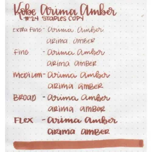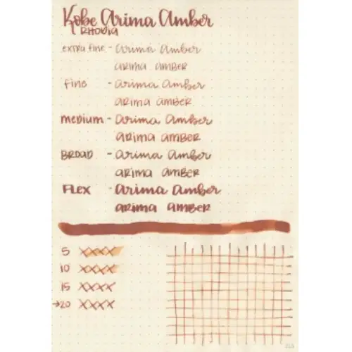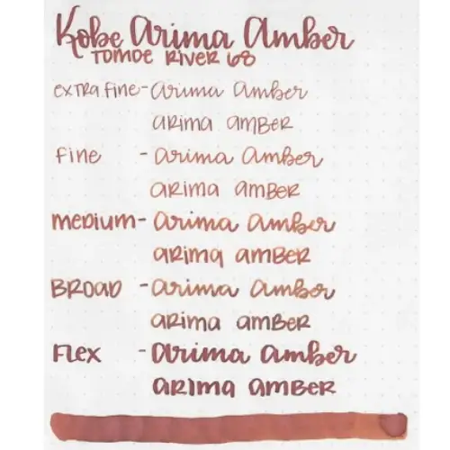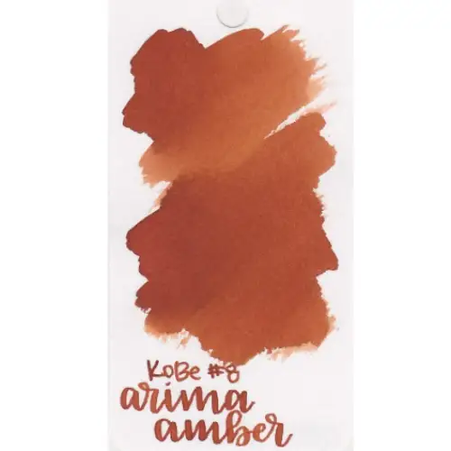 L'ambrata profondità delle storiche sorgenti termali di Kobe. Arima, nel nord di Kobe, è una località termale (onsen) con una storia millenaria. Le sue acque, ricche di ferro e sale, hanno un caratteristico colore rosso-bruno che fin dall'antichità viene chiamato "kinsen" (acqua dorata). Questo inchiostro cattura quel colore caldo e avvolgente: un ambrato profondo che ricorda l'ossidiana, il tè al latte thailandese o un tramonto autunnale.
