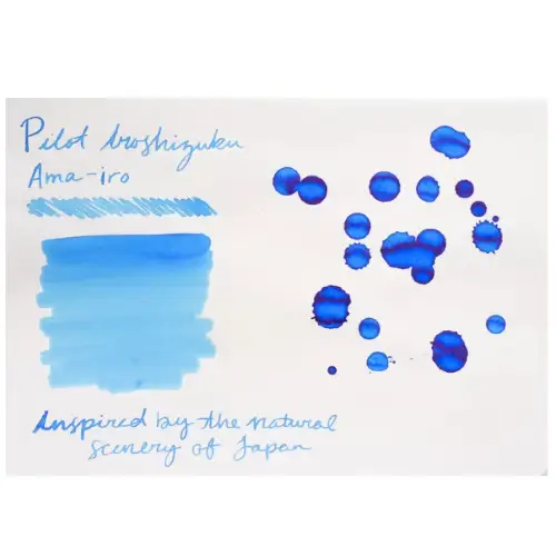 L'azzurro luminoso di un cielo giapponese senza nuvole, racchiuso in una bottiglia. Ispirato alla bellezza dei paesaggi naturali del Giappone, l'inchiostro Ama-iro (colore del cielo) cattura la freschezza e la trasparenza di una giornata estiva ideale. Fa parte della prestigiosa linea Iroshizuku, dove ogni colore è una poesia liquida che evoca un elemento della natura.