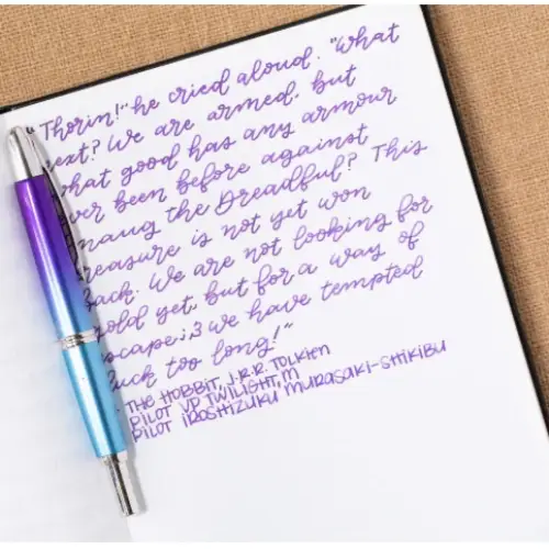 Rendi omaggio alla dama di corte che diede vita al primo grande romanzo giapponese con un viola degno della sua eredità. Murasaki-Shikibu è un viola regale, profondo e ricco di sfumature, che evoca l'eleganza e la raffinatezza dell'epoca Heian. Parte della collezione iconica Iroshizuku di Pilot, questo inchiostro unisce un colore dall'innegabile charme a una formula premium che garantisce una scrittura eccezionalmente fluida e soddisfacente.
