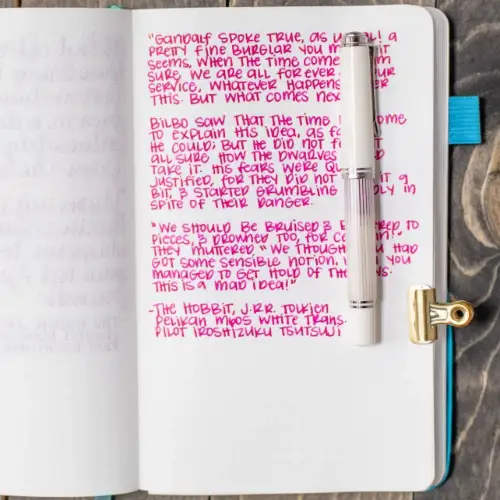 Cattura la vibrante esplosione di colore di un'aiuola di azalee in piena fioritura. Tsutsuji è un rosa intenso, luminoso e festoso, che trasmette gioia ed energia su ogni pagina. Parte dell'acclamata collezione Iroshizuku di Pilot, questo inchiostro unisce un colore vivace alle prestazioni impeccabili della sua formula premium, garantendo una scrittura fluida, una splendida resa delle sfumature e un'esperienza di scrittura straordinariamente piacevole.