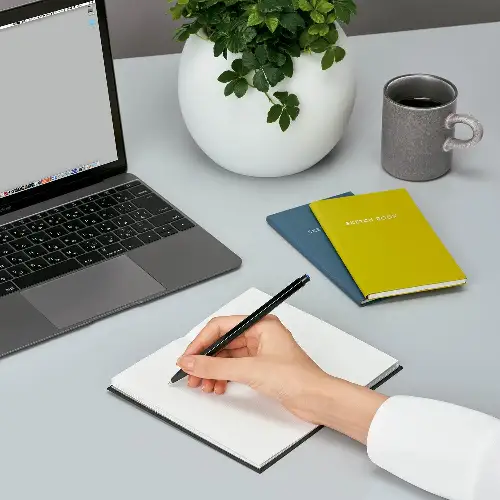 La copertina rigida offre stabilità anche quando si scrive in piedi o fuori casa, mentre la carta di alta qualità woodfree assicura una scrittura fluida e pulita con penne, matite o stilografiche. Il formato compatto permette di trasportarlo facilmente in mano o in borsa, combinando funzionalità e design professionale.