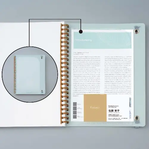 • Rilegatura: Anelli morbidi in resina olefinica (forma a "D")