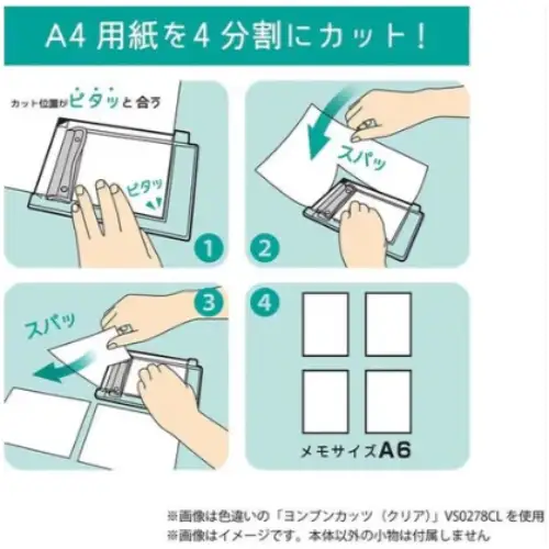 Kutsuwa – 4 Bun Cuts, Yonbun Cuts Paper Cutter, Clipboard A6, Sheer Blue