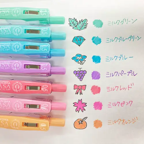 Il set di penne a gel dai colori tenui e cremosi come il latte. La linea Sarasa Clip Milk Color è caratterizzata da tonalità pastello morbide e rilassanti, perfette per aggiungere un tocco di dolcezza e delicatezza a scrittura, appunti e decorazioni. Questo set da 8 colori è ideale per chi ama uno stile soft e raffinato.