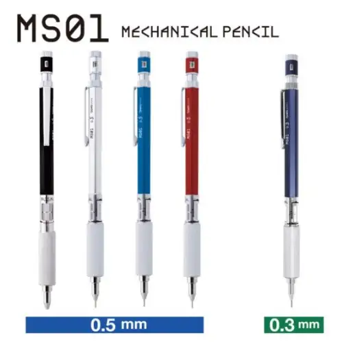 - Ohto - MS01, Matita meccanica giapponese, Qualità Premium, Fusto Argento, Colore rosso, 0.5mm [MS01-SP5-SV]