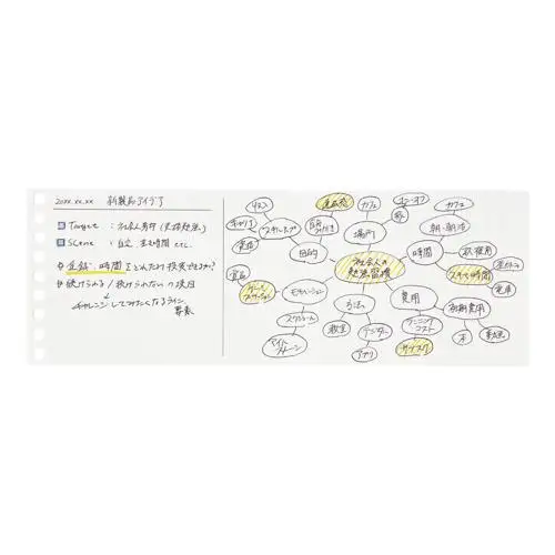 Fogli sciolti in formato Mini Wide che si aprono come una fisarmonica: chiusi sono compatti e facili da trasportare, aperti diventano il doppio più larghi (247 mm) offrendo ampio spazio di scrittura. Progettati per chi cerca la massima flessibilità, possono essere utilizzati sia con i binder dedicati Mini di Maruman, sia inseriti in raccoglitori standard da 9 fori come note aggiuntive.