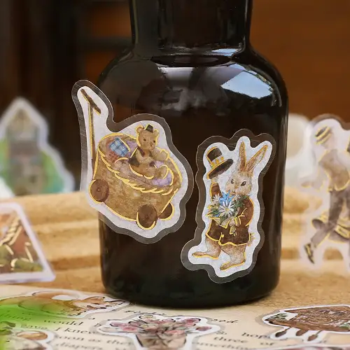 Adesivi decorativi in stile flake seal con illustrazioni a tema alpino. Perfetti per journaling, scrapbooking e decorazioni creative.
