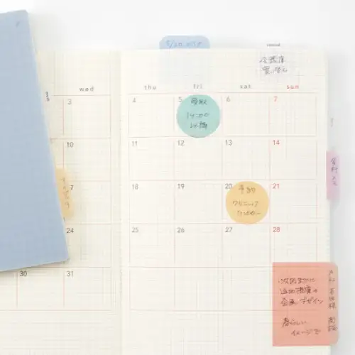Personalizza la tua organizzazione con questi pratici adesivi a forma rotonda. I fusen film della linea isshoni. sono progettati per essere visibili come un indice, sporgendo dal bordo del tuo quaderno o planner. Realizzati in spesso film PET, sono resistenti e non si piegano, ideali per segnalare pagine importanti e creare il tuo sistema di indicizzazione personalizzato.