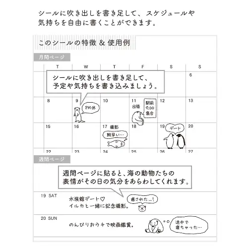 Questi adesivi rimovibili offrono un modo divertente e creativo per decorare margini, date o righe del tuo diario o planner. Presentano simpatiche creature marine disegnate a mano con espressioni uniche, perfette per aggiungere un tocco di allegria e personalizzare i tuoi appunti con messaggi e nuvolette parlanti.