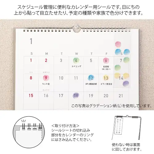 Questi adesivi per calendario sono progettati per aiutarti a organizzare la tua agenda evidenziando appuntamenti direttamente sui numeri del calendario. Il foglio può essere fissato all'anello per averlo sempre a portata di mano. Decorare il tuo calendario preferito con questi adesivi ne migliora sia la funzionalità che l'aspetto, rendendolo più piacevole da usare.
