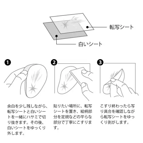 • Facile da usare: basta ritagliare il motivo desiderato, rimuovere la pellicola bianca, posizionarlo e strofinare con un righello per trasferire l'immagine.