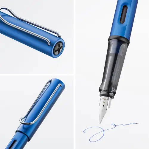 La LAMY AL-star è una penna stilografica moderna realizzata in alluminio anodizzato, progettata per unire solidità, leggerezza e design iconico. La colorazione Ocean Blue conferisce uno stile fresco e contemporaneo, adatto sia a studenti sia a professionisti.