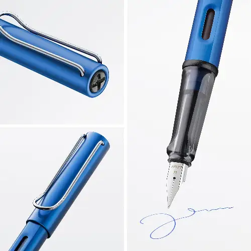 La Lamy AL-star è una stilografica in alluminio anodizzato, progettata per offrire solidità, leggerezza e una sensazione premium al tatto. La finitura Ocean Blue, intensa e moderna, conferisce alla penna uno stile deciso ed elegante.