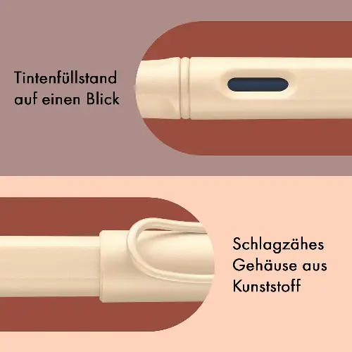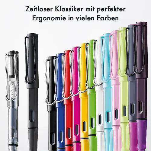 La Safari presenta inoltre una finestra per controllare il livello d’inchiostro, una clip a molla cromata e un design robusto che rende la penna pratica e resistente. Compatibile con cartucce Lamy T10 o con convertitore Z28 (non incluso).