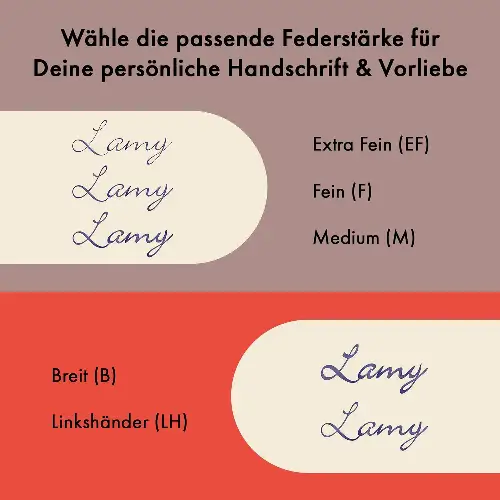 Il pennino in acciaio M (Medium) offre un tratto pieno e morbido, ideale per una scrittura fluida, espressiva e confortevole. L’impugnatura ergonomica sagomata favorisce una corretta posizione delle dita, assicurando comfort anche durante sessioni di scrittura prolungate.