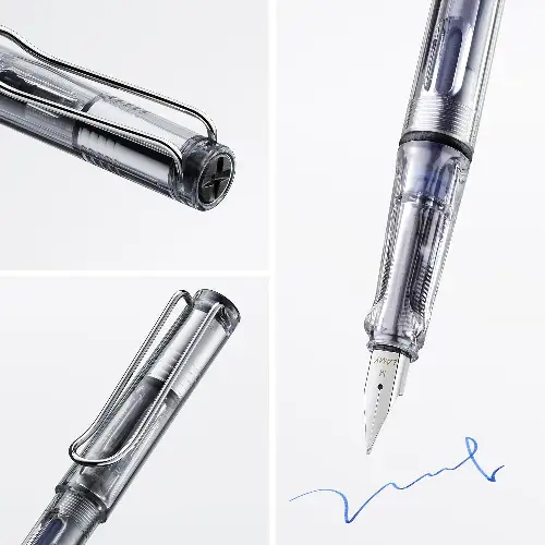 Penna stilografica Lamy Safari Vista con pennino EF (Extra Fine) e corpo trasparente. Realizzata in resina ABS resistente, leggera ed ergonomica, ideale per una scrittura estremamente precisa a scuola, in ufficio e nell’uso quotidiano.