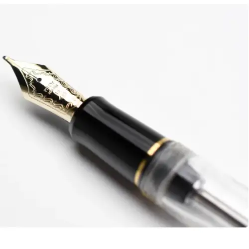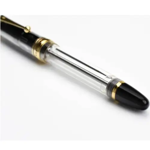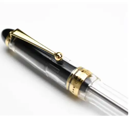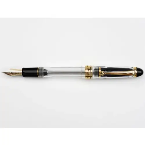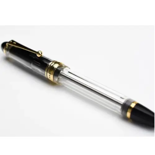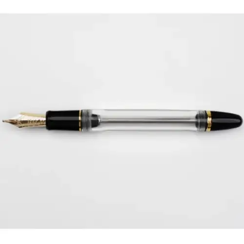 Un capolavoro di ingegneria giapponese, celebre tra gli intenditori per il suo ingegnoso sistema di riempimento a vuoto e la capacità d'inchiostro eccezionale. La versione "Clear" trasforma la penna in uno spettacolo visivo, permettendo di ammirare il livello e il colore dell'inchiostro mentre scorre all'interno del corpo in resina. Il grande pennino in oro 14 carati completa un'esperienza di scrittura morbida e senza pari.
