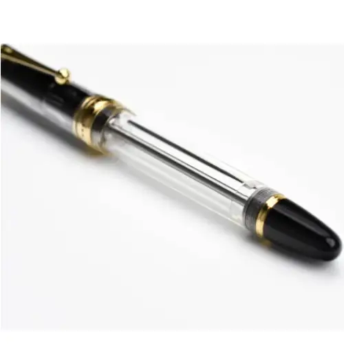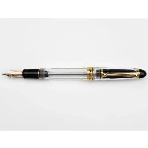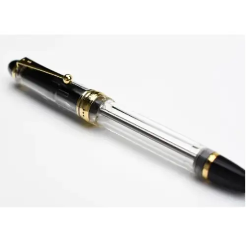 Un capolavoro di ingegneria giapponese, celebre tra gli intenditori per il suo ingegnoso sistema di riempimento a vuoto e la capacità d'inchiostro eccezionale. La versione "Clear" trasforma la penna in uno spettacolo visivo, permettendo di ammirare il livello e il colore dell''inchiostro mentre scorre all'interno del corpo in resina. Il grande pennino in oro 14 carati completa un'esperienza di scrittura morbida e senza pari.