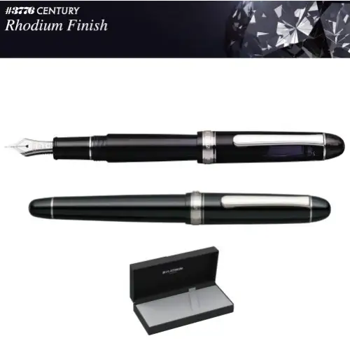Platinum - #3776 Century Silver Trim, Black Diamond, Nib Fine