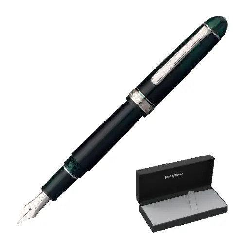 Platinum - #3776 Century Silver Trim, Laurel Green, Nib Medio