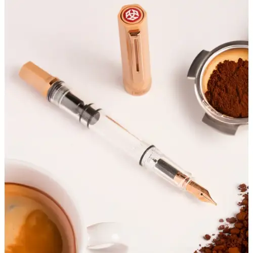 Un omaggio alla cultura del caffè, in edizione limitata. Questa speciale variante della celebre linea ECO si ispira al colore caldo e avvolgente del caffè con una nota di crema, abbinato a finiture in bronzo che ricordano i dettagli delle macchine per espresso. L'unione tra l'affidabilità del sistema a pistone TWSBI e un'estetica calda e raffinata la rende una scelta perfetta per gli amanti del caffè e della scrittura.