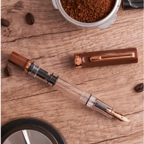Un omaggio alla cultura del caffè, in edizione limitata. Questa speciale variante della celebre linea ECO si ispira al colore profondo e avvolgente dell'espresso, abbinato a finiture in bronzo che ricordano la crema di un buon caffè. L'unione tra l'affidabilità del sistema a pistone TWSBI e un'estetica calda e raffinata la rende una scelta perfetta per gli amanti del caffè e della scrittura.